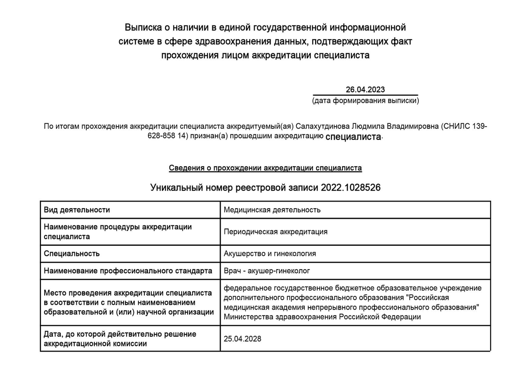 Врач - Акушер Салахутдинова Людмила Владимировна — стаж 14 лет, Врач второй категории, 44 отзыва. Стоимость приема от 2400 руб. — запись онлайн и по телефону +7 (495) 151-00-32.